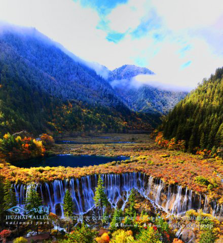 九寨溝是大自然鬼斧神工之杰作。這里四周雪峰高聳,湖水清澈艷麗,飛瀑多姿多彩,急流洶涌澎湃,林木青蔥婆娑。藍藍的天空,明媚的陽光,清新的空氣和點綴其間的古老村寨、棧橋、磨坊,組成了一幅內(nèi)涵豐富、和諧統(tǒng)一的優(yōu)美畫卷,歷來被當(dāng)?shù)夭刈逋暈椤吧裆绞ニ?。九寨溝景區(qū)開放后,東方人稱之為“人間仙境”,西方人則將之譽為“童話世界”。